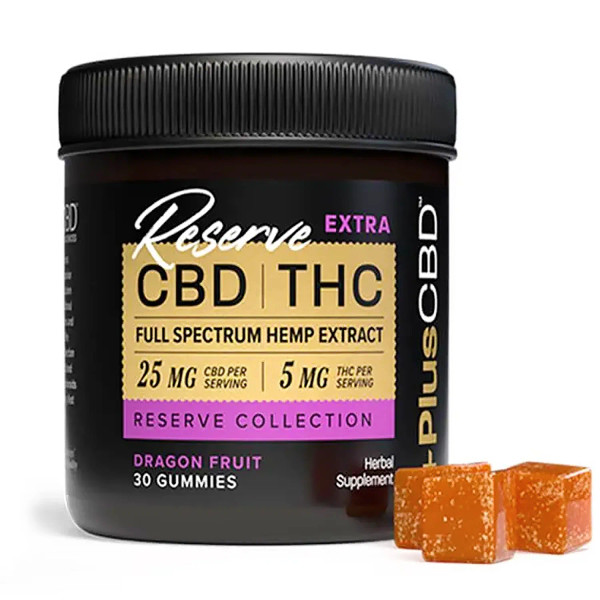 Experience deep relaxation, faster recovery, and a brighter mood with +PlusCBD Reserve Collection Extra Gummies. Formulated with a carefully balanced 5:1 ratio of CBD to THC, each gummy delivers 25mg of CBD and 5mg of THC for a smooth micro-dosing experience.